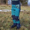 - Ušily jsme je ze softshellu s bezkonkurenčními parametry voděodolnosti 30 000 mm a paroprodyšnosti 15 000 g/m2/24hod. Díky těmto vysokým parametrům jsou kalhoty vysoce voděodolné. Velice efektivně odvádí pot od těla, takže si v nich člověk nepřipadá jako v pláštěnce. Děti se v nich nepotí při běhání po lese, ani když nastoupí do vlaku.