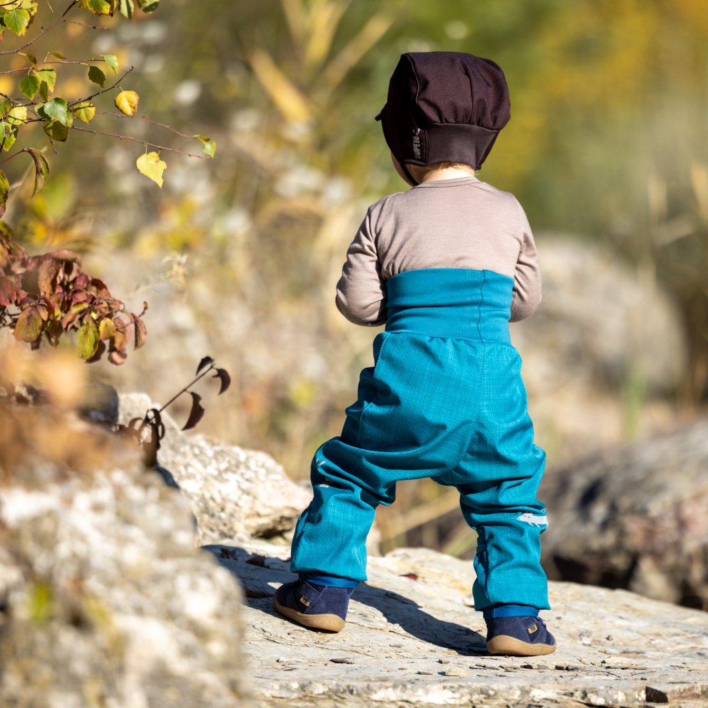 Jarní-podzimní batolecí softshellové kalhoty petrolejové