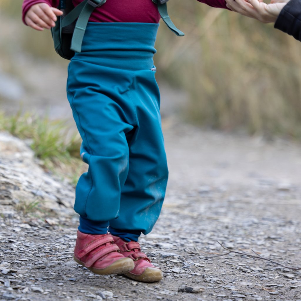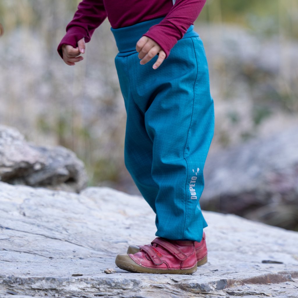 Jarní-podzimní batolecí softshellové kalhoty petrolejové