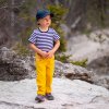 Kalhoty jsme si oblíbili na první oblečení. Brala jsem tuhle barvu jako neutrální, aby je pak mohl nosit syn. Materiál je lehoučký, prodyšný a ty vychytané, zkracovací nohavice... Miluju je. Jsou s námi všude. Teď jak se oteplí, je zas budeme tahat na hřiště, na případné převlečení. Jsou fakt minimalistické do objemu.
