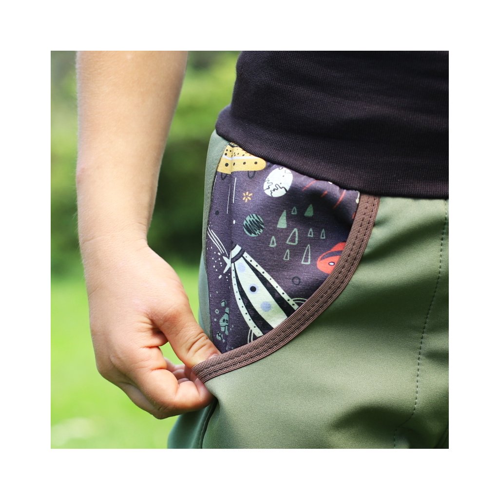Rostoucí softshellové kalhoty s kožíškem khaki
